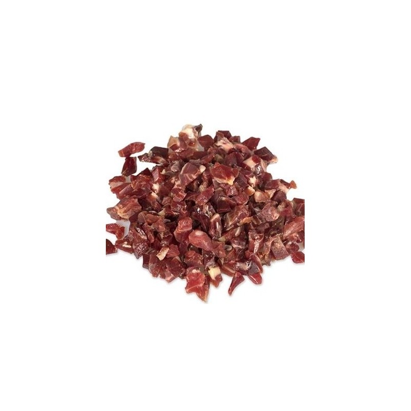 Excelente jamón curado . Partido en taquitos y envasado al vacio en 1 kg.