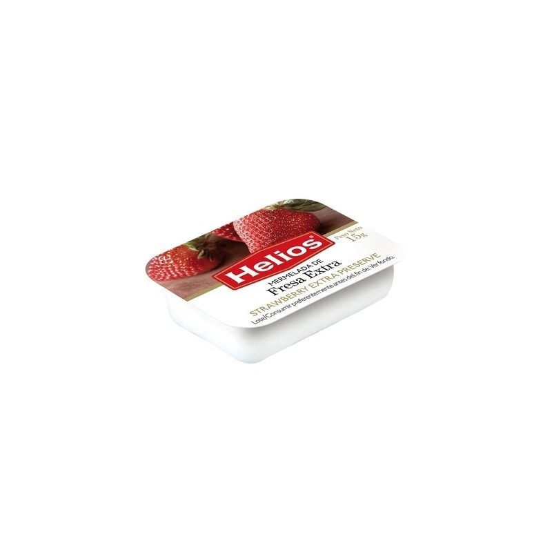 - Fresa, azúcar, jarabe de glucosa y fructosa, espesante: pectina, acidulante: ácido cítrico, conservadores: benzoato sódico, sorbato potásico, antioxidante: ácido ascórbico