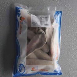 Filetes de merluza con piel, prácticamente sin espinas, caracterizados por su color blanco y textura suave.