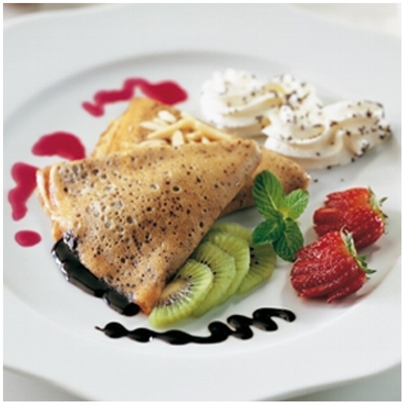 Sabrosos Crêpes de chocolate que se pueden personalizar con diferentes frutos, helados, nata, chocolate e incluso crear exóticos platos por su colorido o por su presentación.