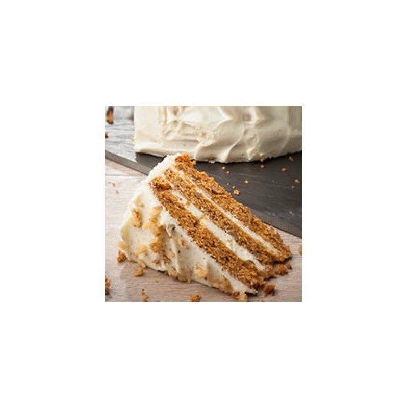 Tres capas de bizcocho edifican esta majestuosa tarta. Cobertura y relleno de crema de queso, y toque final a base de frutos secos. Un momento único.