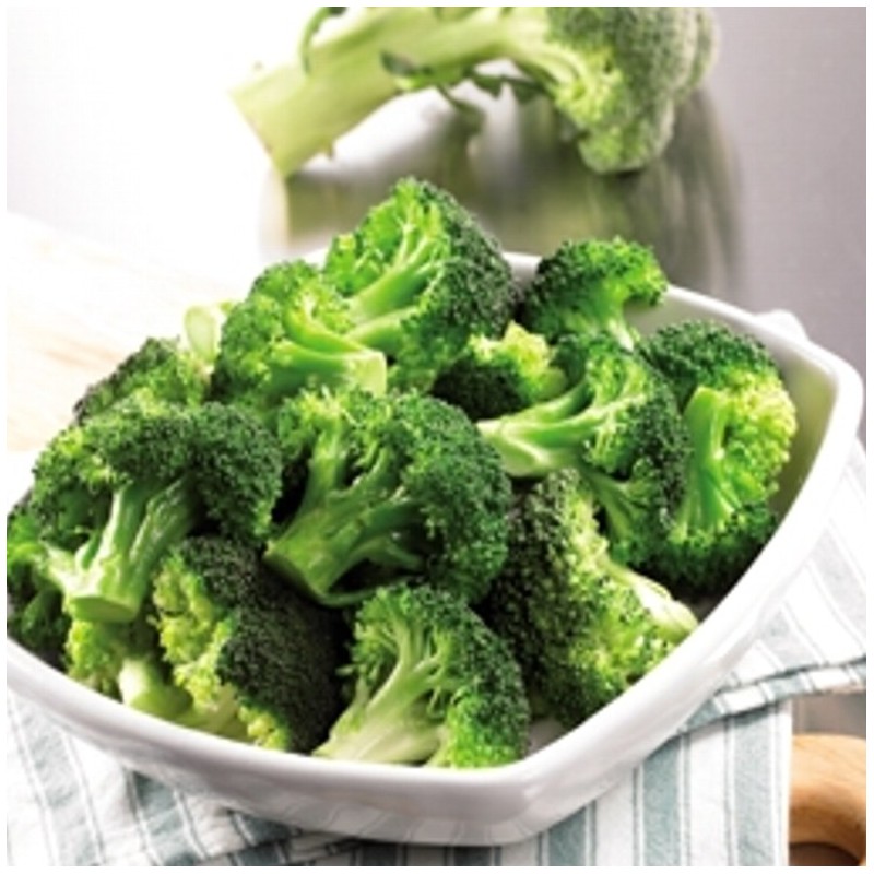 Brócoli cosechado a mano durante los últimos meses del otoño. Los floretes son seleccionados en su punto óptimo de maduración para ofrecer una flor compacta, de textura suave, tamaño homogéneo y libre de partes fibrosas.